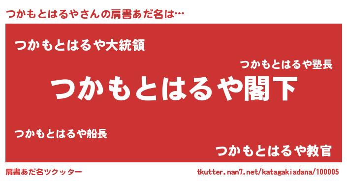 | 意味不明あだ名 | 『自称つかもとはるや』 |