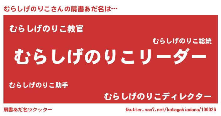 | 男性向けラノベタイトル風あだ名 | 『むらしげのりこの嫁は女の子じゃないと思った?』 |