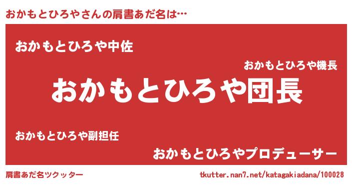 | 男性向けラノベタイトル風あだ名 | 『ダンジョンにおかもとひろやを求めるのは間違っているだろうか』 |