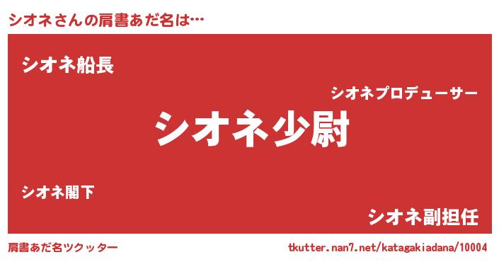 | ヘコむあだ名 | 『シオネ(笑)』『シオを』『酢こんぶ』 |