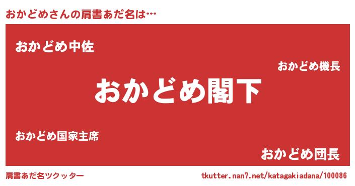 | 男性向けラノベタイトル風あだ名 | 『Re:おかどめから始める異世界生活』 |