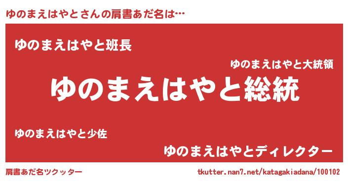 | 男性向けラノベタイトル風あだ名 | 『魔法科高校のゆのまえはやと』 |
