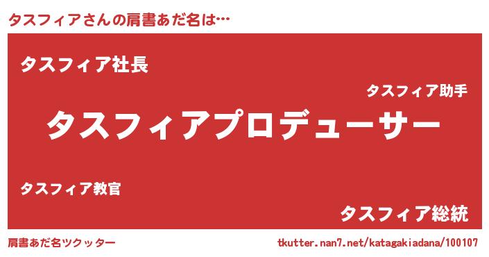 | 男性向けラノベタイトル風あだ名 | 『はたらくタスフィアさま!』 |