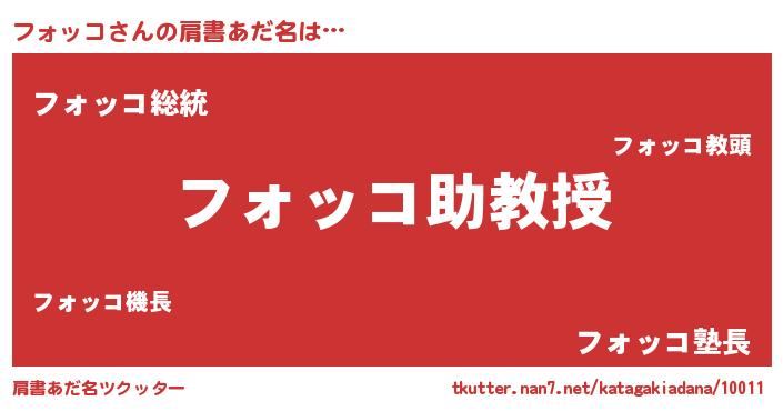 | 男性向けラノベタイトル風あだ名 | 『ノーゲーム・ノーフォッコ』 |
