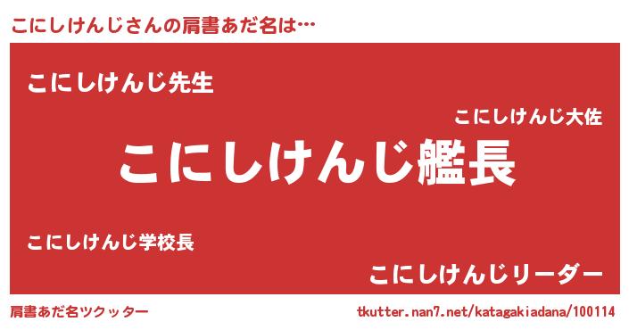 | ヘコむあだ名 | 『こにしけんじ(苦笑)』『こにお』 |