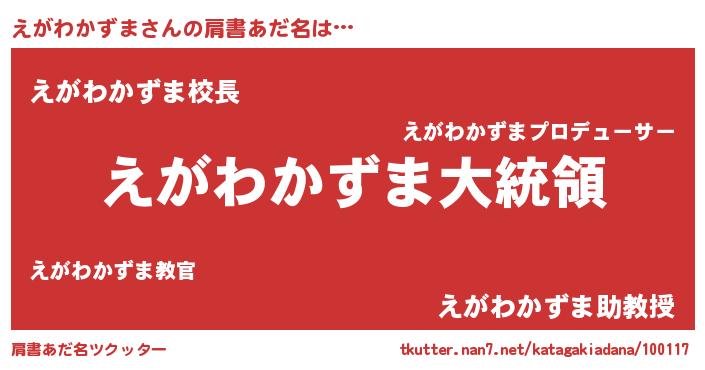 | 意味不明あだ名 | 『えがわかずまフォーエバー』 |