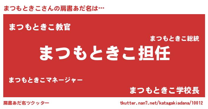 | ヘコむあだ名 | 『まつもときこ(苦笑)』『まつぷりん』 |