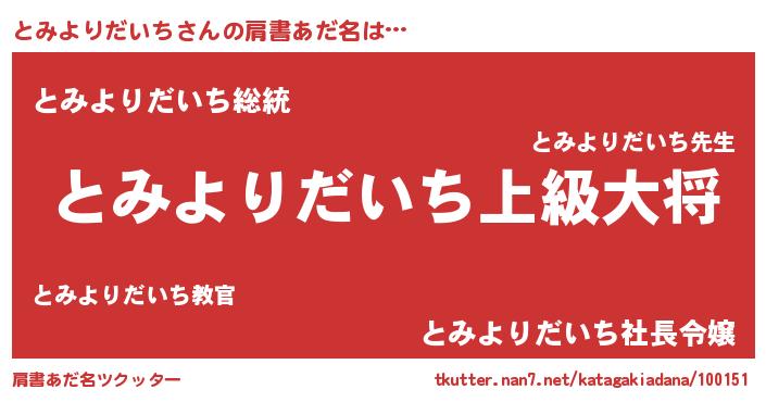 | ヘコむあだ名 | 『とみっふぃ~』『とみよりだいち(震え声)』 |