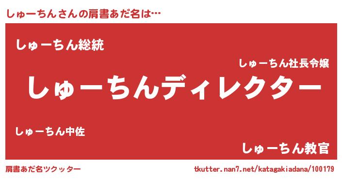 | 男性向けラノベタイトル風あだ名 | 『しゅーちんに滅ぼされるだけの簡単なお仕事です』 |