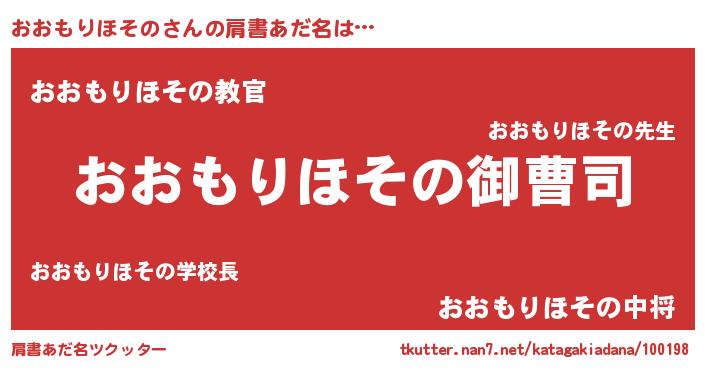| 男性向けラノベタイトル風あだ名 | 『おおもりほそのの憂鬱』 |