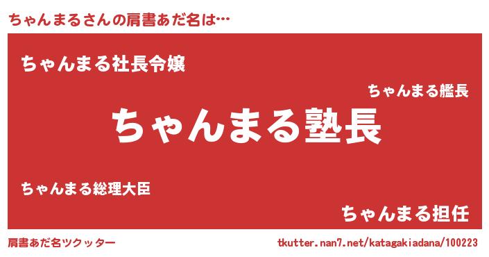 | 男性向けラノベタイトル風あだ名 | 『ちゃんまるの嫁は女の子じゃないと思った?』 |