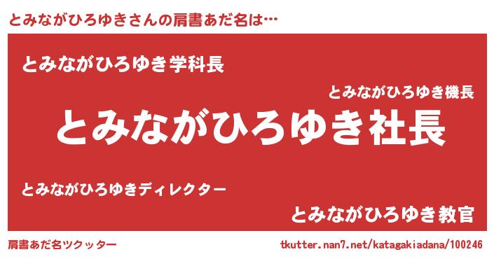 | ヒーロー風カッコイイあだ名 | 『スーパートミナガヒロユキ』 |