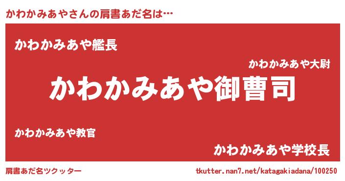 | 男性向けラノベタイトル風あだ名 | 『かわかみあやの憂鬱』 |