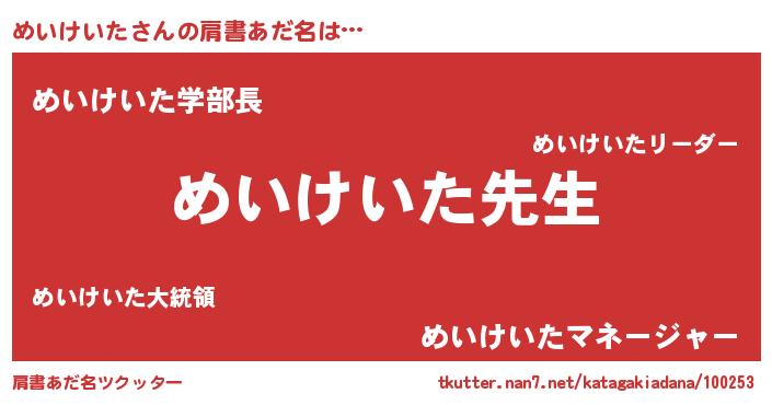 | 意味不明あだ名 | 『永久保存めいけいた』『自称めいけいた』 |