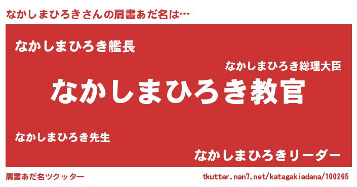| 男性向けラノベタイトル風あだ名 | 『魔弾の王となかしまひろき』 |