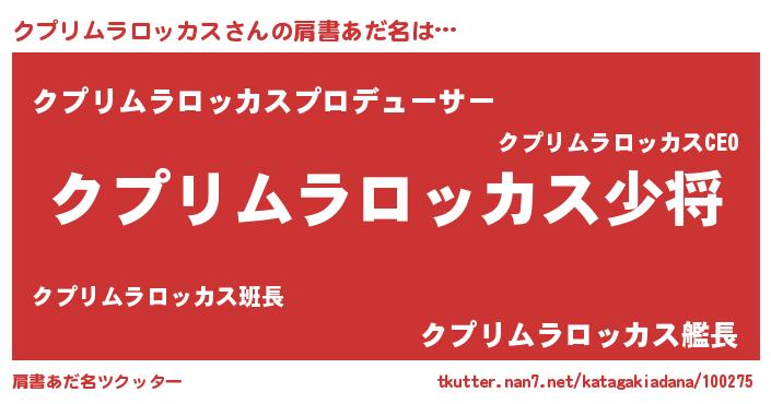 | 男性向けラノベタイトル風あだ名 | 『クプリムラロッカススレイヤー』 |