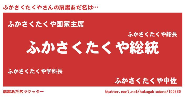 | 意味不明あだ名 | 『自称ふかさくたくや』 |