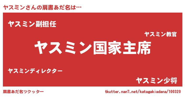 | 欧米人風あだ名 | 『ヤスミンクリステル』 |
