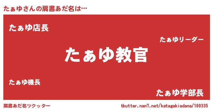 | 男性向けラノベタイトル風あだ名 | 『この素晴らしい世界にたぁゆを!』 |