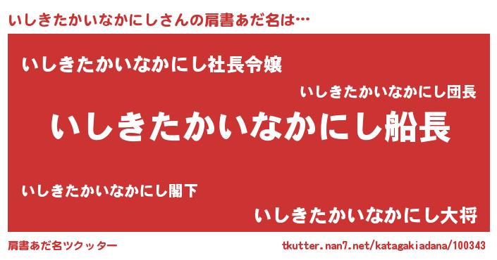 | 胡散臭い通販商品みたいなあだ名 | 『億万長者になれるブレスレット…その名も「いしきたかいなかにし」』 |