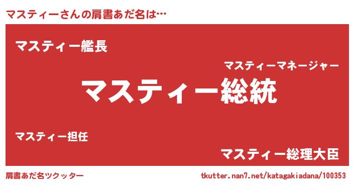 | 意味不明あだ名 | 『自称マスティー』『永久保存マスティー』 |