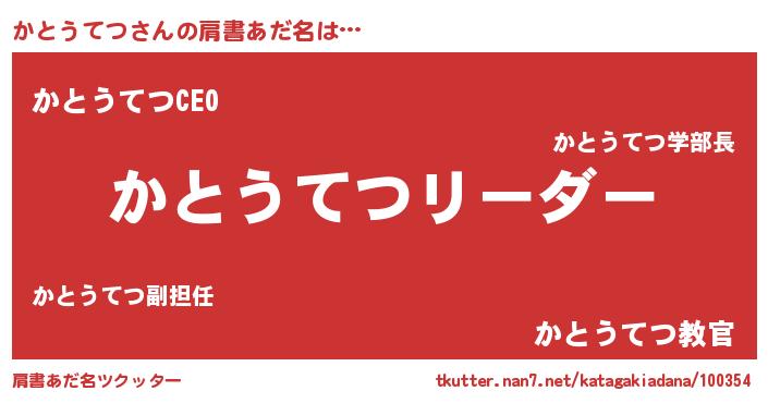 | 男性向けラノベタイトル風あだ名 | 『かとうてつの嫁は女の子じゃないと思った?』 |