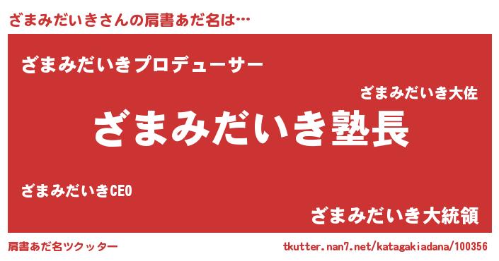 | 胡散臭い通販商品みたいなあだ名 | 『信頼と実績のネックレス…その名も「ざまみだいき」』 |