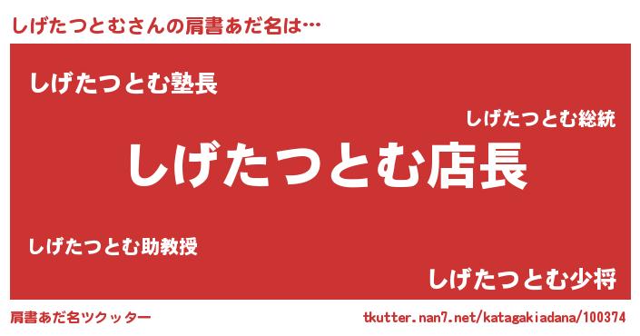 | 男性向けラノベタイトル風あだ名 | 『しげたつとむの憂鬱』 |