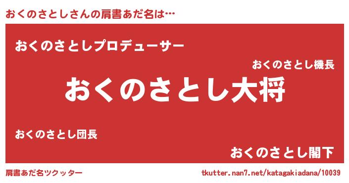 | 女子向けラノベタイトル風あだ名 | 『おくのさとしの玉の輿計画!』 |