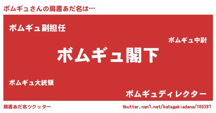 | 男性向けラノベタイトル風あだ名 | 『Re:ボムギュから始める異世界生活』 |