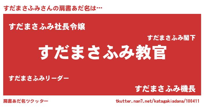 | 意味不明あだ名 | 『住所不定無職すだまさふみ(13歳)』 |