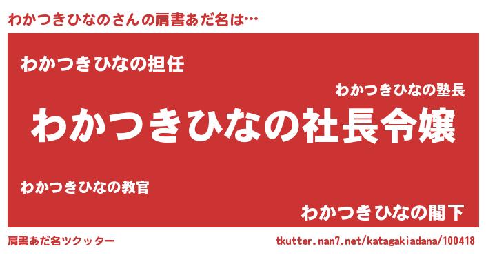 | 胡散臭い通販商品みたいなあだ名 | 『必ず成功する霊験あらたかなお札…その名も「わかつきひなの」』 |