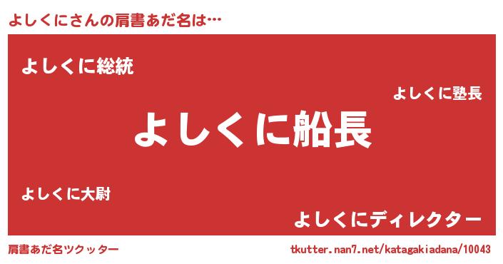 | 意味不明あだ名 | 『自称よしくに』『ヨモギ科よしくに属』 |