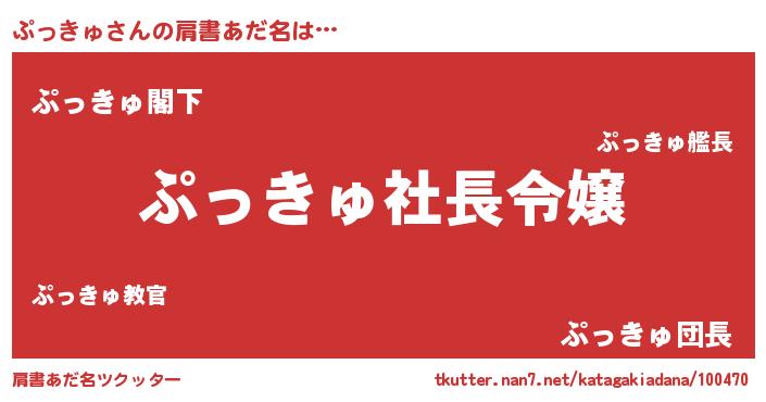 | 胡散臭い通販商品みたいなあだ名 | 『モテモテ間違いなし霊験あらたかなお札…その名も「ぷっきゅ」』 |