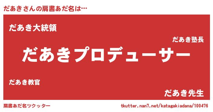 | 男性向けラノベタイトル風あだ名 | 『はたらくだあきさま!』 |