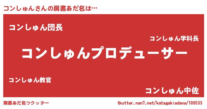 | 男性向けラノベタイトル風あだ名 | 『はたらくコンしゅんさま!』 |