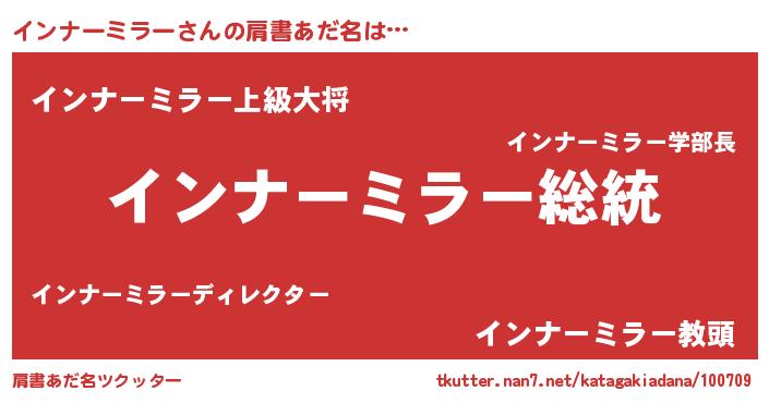 | 意味不明あだ名 | 『自称インナーミラー』 |