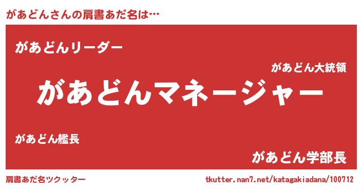 | 男性向けラノベタイトル風あだ名 | 『があどんに滅ぼされるだけの簡単なお仕事です』 |