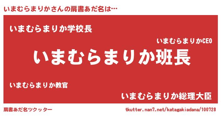 | 男性向けラノベタイトル風あだ名 | 『いまむらまりかの嫁は女の子じゃないと思った?』 |