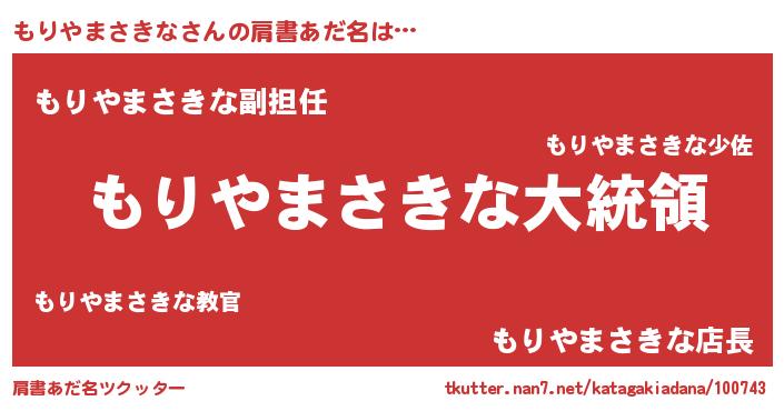 | 女子向けラノベタイトル風あだ名 | 『もりやまさきなの雑貨屋さん』 |