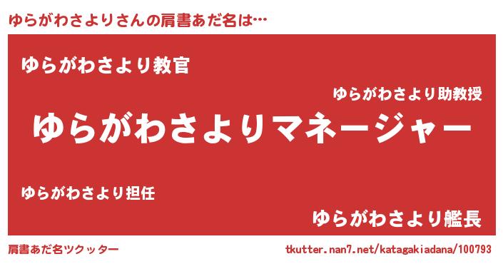 | ヘコむあだ名 | 『ゆらがわさより(小並感)』『なまこ酢』 |