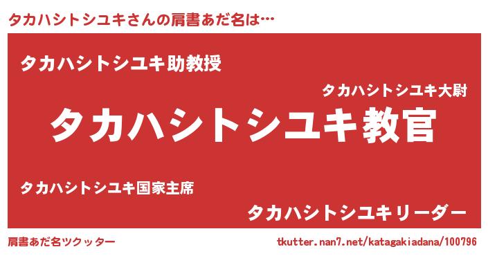 | 男性向けラノベタイトル風あだ名 | 『この素晴らしい世界にタカハシトシユキを!』 |