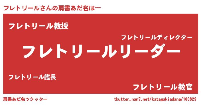 | 男性向けラノベタイトル風あだ名 | 『ダンジョンにフレトリールを求めるのは間違っているだろうか』 |