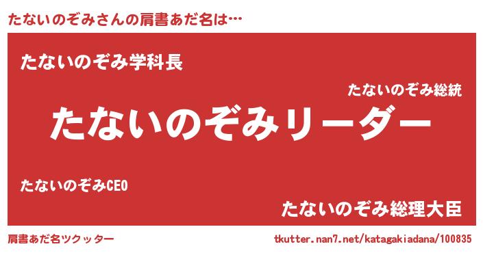 | 意味不明あだ名 | 『とにかく怪しいたないのぞみ』 |