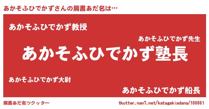 | ヘコむあだ名 | 『あかっぺ』『あかそふひでかず(小並感)』 |