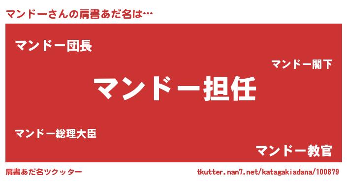 | 意味不明あだ名 | 『永久保存マンドー』『自称マンドー』 |