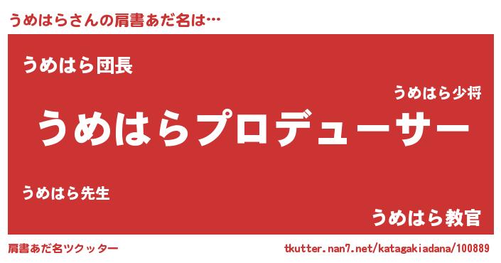 | 男性向けラノベタイトル風あだ名 | 『うめはらに滅ぼされるだけの簡単なお仕事です』 |