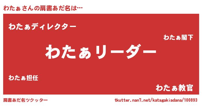 | 意味不明あだ名 | 『とにかく怪しいわたぁ』『自称わたぁ』 |