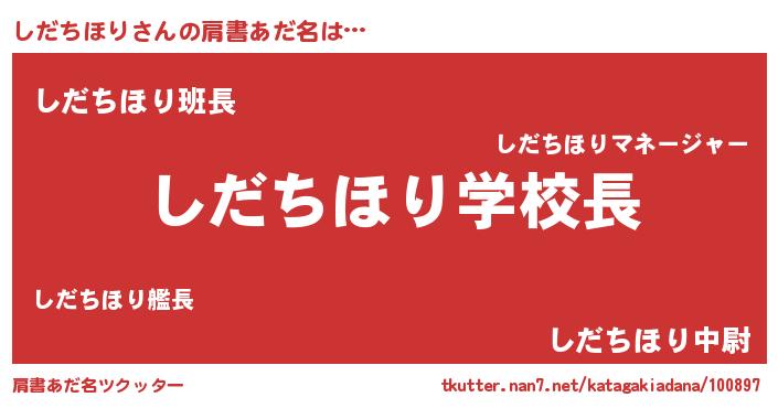 | 男性向けラノベタイトル風あだ名 | 『おまえをオタクにしてやるから、俺をしだちほりにしてくれ! 』 |