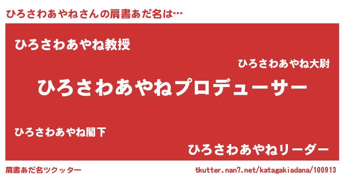 | ヒーロー風カッコイイあだ名 | 『正義の使者ひろさわあやね』 |